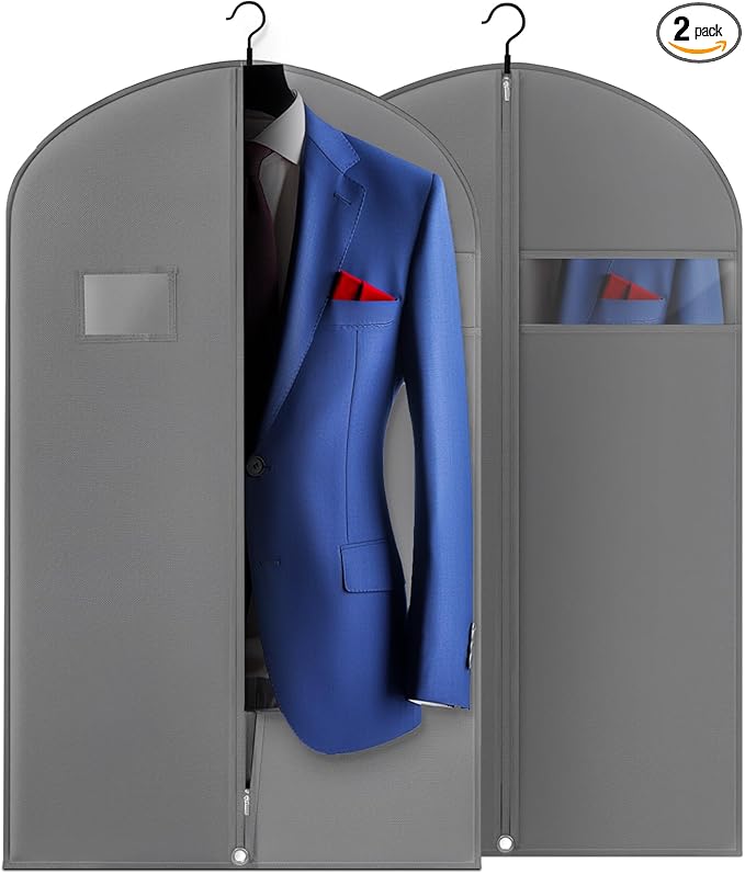 2 Pack 40-inch Suit Bag Garment Bag for Travel and Storage, Garment Bags for Hanging Clothes with Zipper and Visible Transparent Window, Gray
