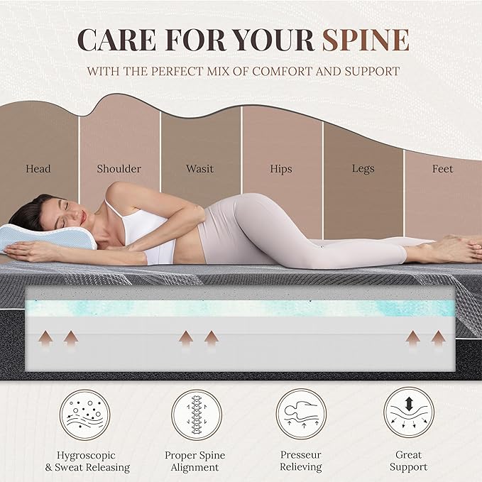 - Zero-Pressure Comfort: The adaptive memory foam contours to your body, relieving pressure points and supporting spinal alignment, so you can enjoy deeply restorative sleep every night