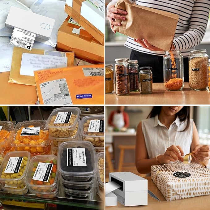 - [Wide Application Range, Meets Diverse Printing Needs] Efficiently prints shipping labels for e-commerce, warehouse management tags, product price stickers, and classroom teaching labels (suitable for teacher supplies). Supports labels 1.57"-4.1" wide (both fanfold and roll types), with flexible design of text, barcodes, and QR codes. This thermal label printer fits both home and business scenarios