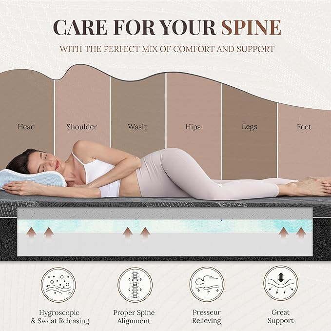 - Zero-Pressure Comfort: The adaptive memory foam contours to your body, relieving pressure points and supporting spinal alignment, so you can enjoy deeply restorative sleep every night