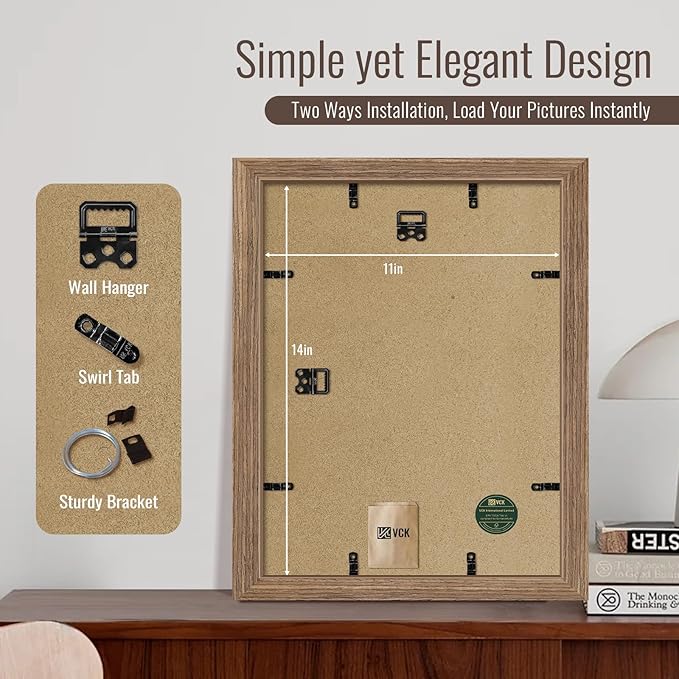- Effortless Installation: Our picture frame comes with hanging hardware for both horizontal and vertical display—perfect for showcasing graduation diplomas, Thanksgiving family photos, or festive holiday art. The unique spin-lock design allows for effortless loading of 11x14 or 14x11 content
