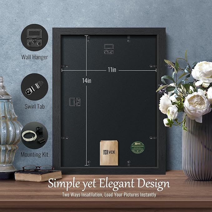 - SIMPLE YET ELEGANT TEXTURE: Grind our skills for ten years, VCK independent designers forge this black picture frame with wondrous textures by three elements: esthetic divinity, a spirit of minimalism & professionalism, and inspiration from an ancient wood grain in the Black Forest, a fit for any décor and color to illuminate your life.