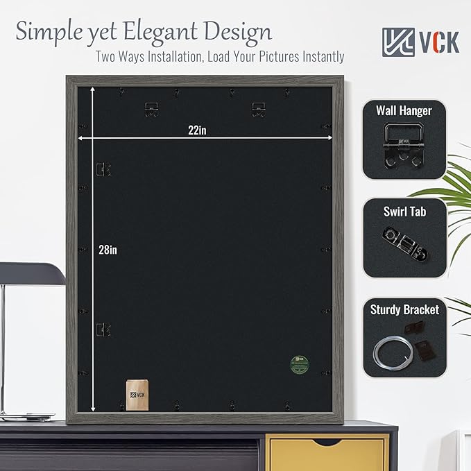 - Effortless Installation: This grey poster frame comes with hanging hardware for vertical/horizontal display and a spin-lock design for easy loading of 22x28 or 28x22 holiday photos, graduation diplomas, or festive art projects—perfect for Thanksgiving mantels, baby shower collages, or office award displays