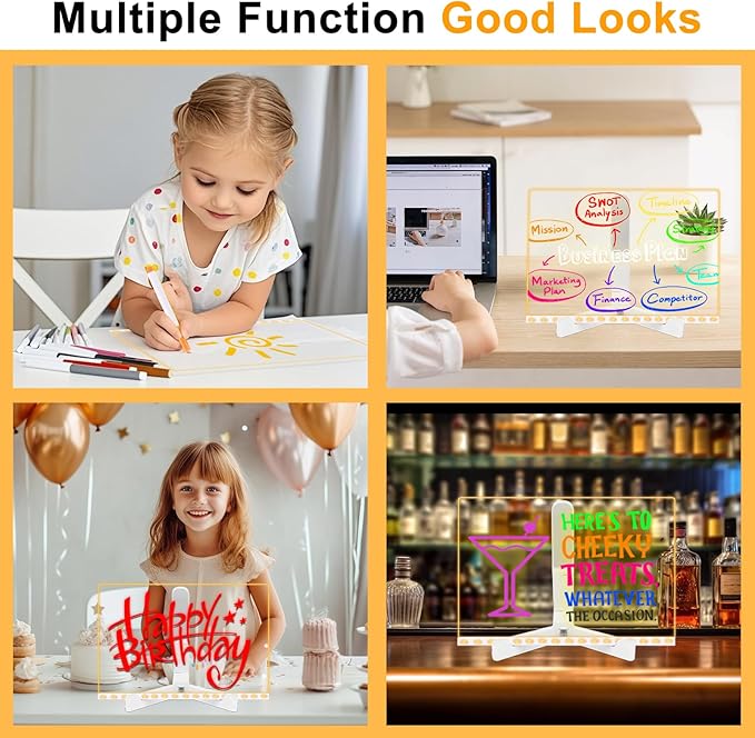 - Holiday Surprise: LED Acrylic Message Board has good light transmittance and can make the night brighter. Add warmth and romance to your room. The drawing board is a perfect holiday greeting for family, friends and colleagues on Valentine's Day, birthdays, Mother's Day, Christmas, Thanksgiving and more