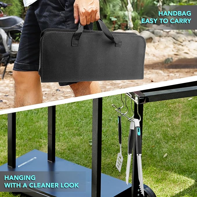 - [Portable Carry Bag for Outdoor Grill] The set comes with a durable, portable bag to easily transport your grill tools and accessories to any BBQ location, making it a complete grill set for outdoor grill and camping.