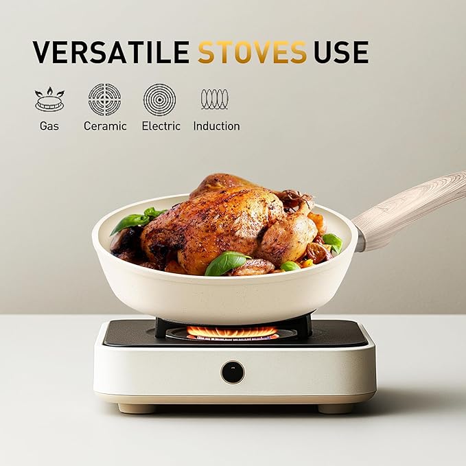 - 𝐓𝐡𝐨𝐮𝐠𝐡𝐭𝐟𝐮𝐥 𝐃𝐞𝐬𝐢𝐠𝐧 𝐟𝐨𝐫 𝐏𝐫𝐚𝐜𝐭𝐢𝐜𝐚𝐥𝐢𝐭𝐲: Anti-scald handles keep your hands safe, while the deeper pan shape allows for versatile cooking techniques, from stir-frying to simmering. Versatile cookware set for various cooking methods