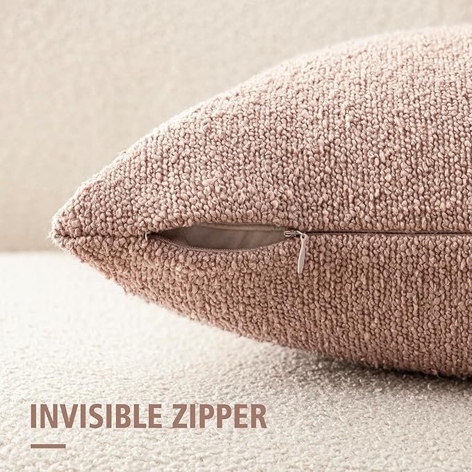 Foindtower Set of 2, Decorative Textured Boucle Throw Pillow Covers Accent Solid Pillow Cases Neutral Soft Cozy Couch Cushion Case for Chair Sofa Bedroom Living Room Home Decor 16 x 16 Inch Light Pink
