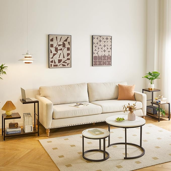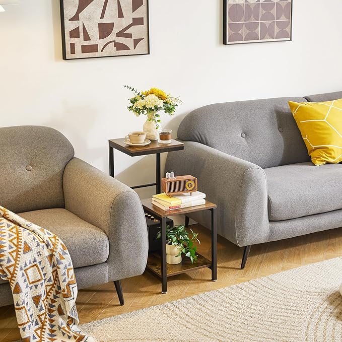 - Unique G-Shaped Design: This stylish G-shaped side table features 3-tier open shelves for increased storage space and unparalleled convenience. You can easily place your favorite daily items on this end table, keeping all your daily necessities within easy reach