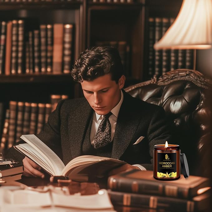 Moroccan Amber Scented Candle, Soy Candles for Home Scented, Masculine Amber Jar Candles Gifts for Men Women, 7oz
