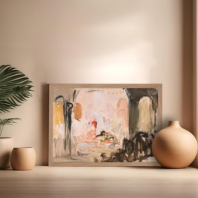 Poster Master Vintage Abstract Poster - Retro City Landscape Painting Print - City Art - Moody Art - Modern Farmhouse Art - Aesthetic Art - Great Living Room or Office Decor, 16x20 Beige Framed