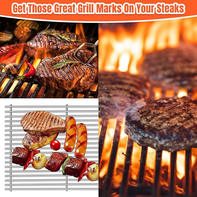- 【Heat Evenly】Our expert grill parts replacement with heavy duty stainless steel to ensure long-lasting use, which can distribute heat evenly across entire surface. The stainless steel heat deflector not only heat evenly and retain heat superbly, but also deliver professional searing, able to produce prominent sear marks and make the food more flavorful.