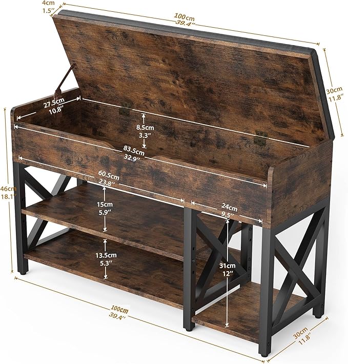 - 【Lift Top Hidden Storage】Shoe storage bench with a lift top storage design provides space for storing small items and protects your entryways from disorder The safe and strong hinges can keeping this storage up so that you don`t have to hold it with your hand ; gently open the cushion can be fixed, sturdy support points to avoid pinching hand.