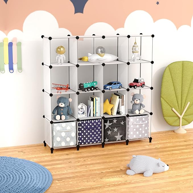 HOMIDEC Closet Organizers and Storage, 16 Cube Storage Organizer, Closet Organizer Bookshelf Cubes Shelves for Clothes, Bedroom, Kids Room, Bathroom, Wardrobe, Garment Racks, Transparent
