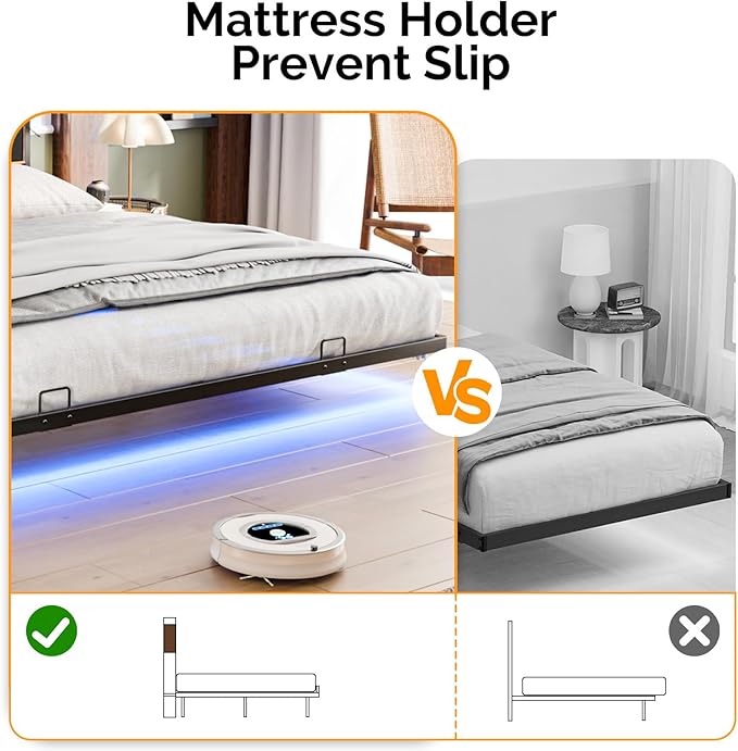 - 【Premium material & Robust construction】Built with a combination of premium metal and MDF, the floating bed frame has a strong construction, accommodating up to 900 lbs,ensuring long-term use and a comfortable sleeping experience.