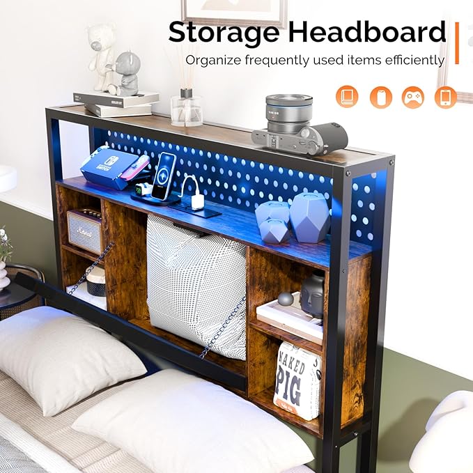 - 【Versatile Power Ports & Modern Design】Our heavy duty twin bed frame features 3 types of power sockets, 2 AC outlets,1USB,1Type-C, ensuring the convenience for charging needs. With a sleek and stylish design, it adds to the overall aesthetics.