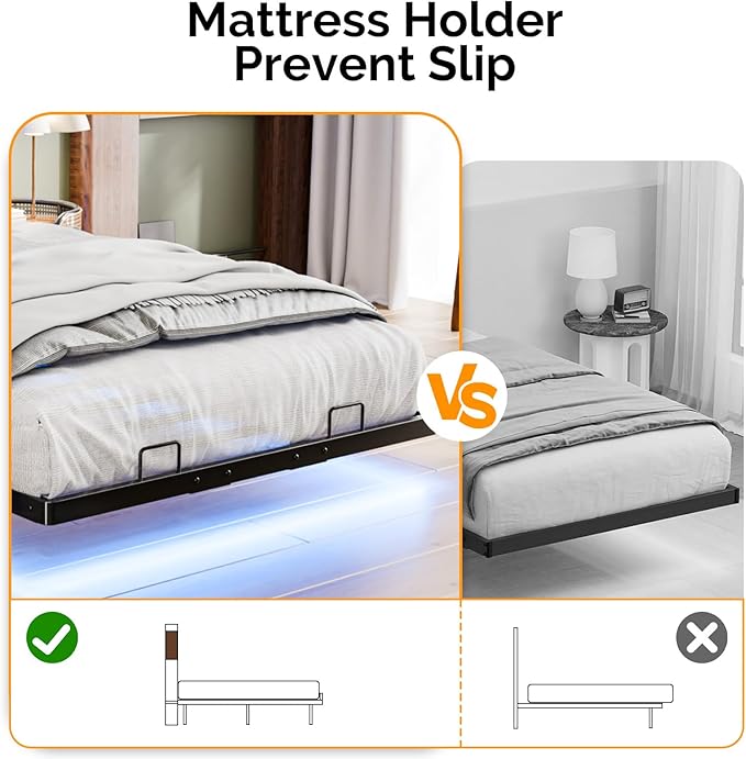 - 【Premium material & Robust construction】Built with a combination of premium metal and MDF, the floating bed frame has a strong construction,accommodating up to 900 lbs. ensuring long-term use and a comfortable sleeping experience.