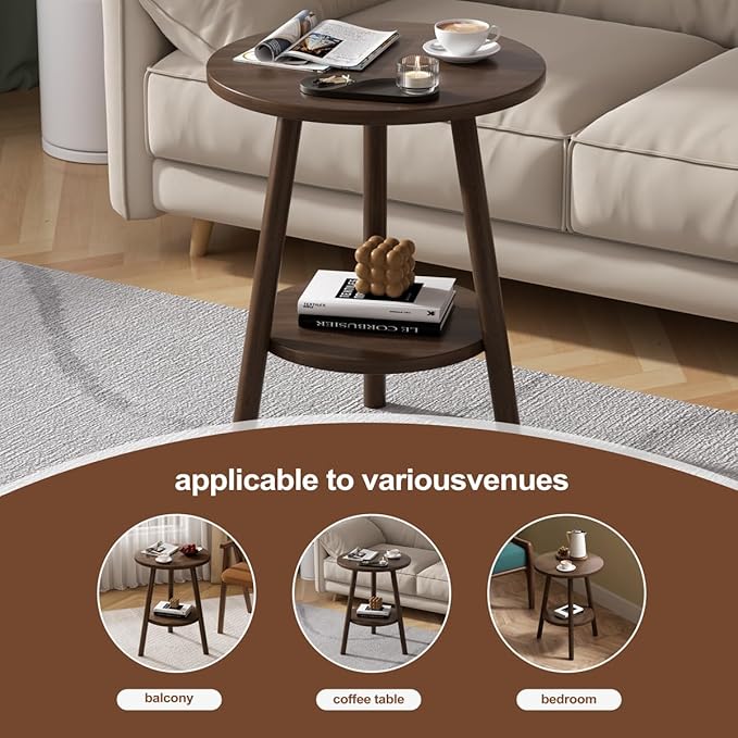 - [Double-Tier Storage] The double deck design of the round table provides more storage and display space, with the upper level suitable for drinks, books or decorative vases, and the lower level to prevent large items such as baskets or magazines. The compact size of this round table can be used as a end table, bedside table, or accent table to fit any room such as the bedroom, living room or study room.