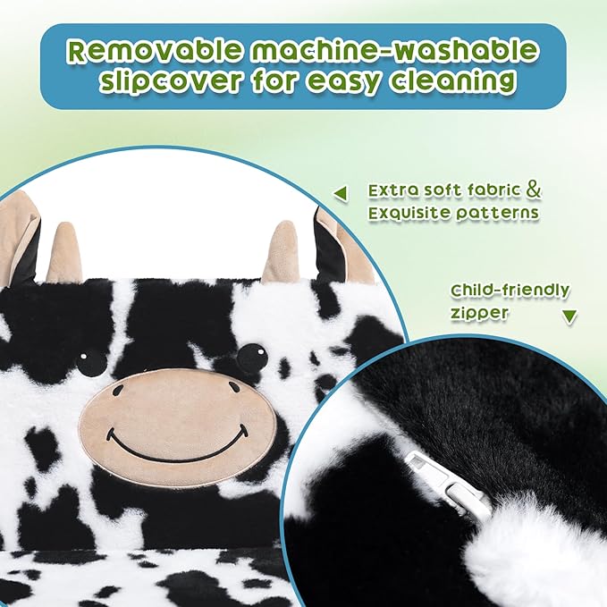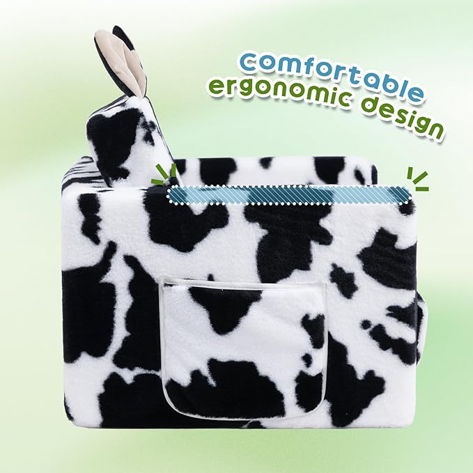 ALIMORDEN Fold Out Toddler Couch, Comfy 2-in-1 Cuddly Sherpa Bear Chair for Kids, Convertible Sofa to Lounger, Kids Cozy Corner Play Couch for Boys and Girls, Cow