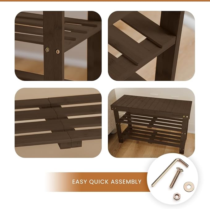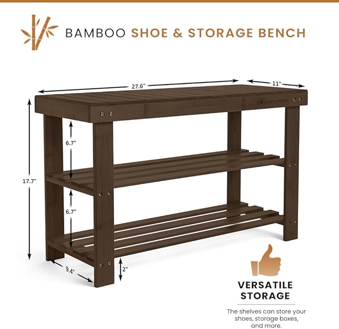 Leaf & Grain Bamboo Shoe Rack - Shoe Storage Bench for Front Door Entrance – Entryway Bench with Shoe Shelf, Shoe Storage Organizer, Wooden Shoe Rack, Durable Shoe Bench for Home (Walnut)