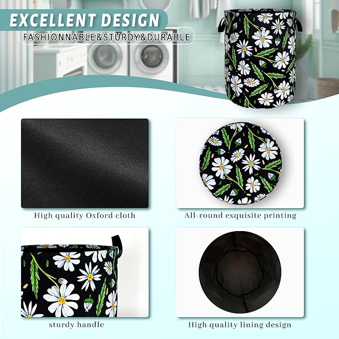 Cute Daisy Flowers Laundry Basket Foldable Oxford Cloth Floral Laundry Hamper With Handle Portable Clothes Storage Basket 18.9 X 16.5 Inch Storage Bag For Laundry Room/Bathroom/Bedroom