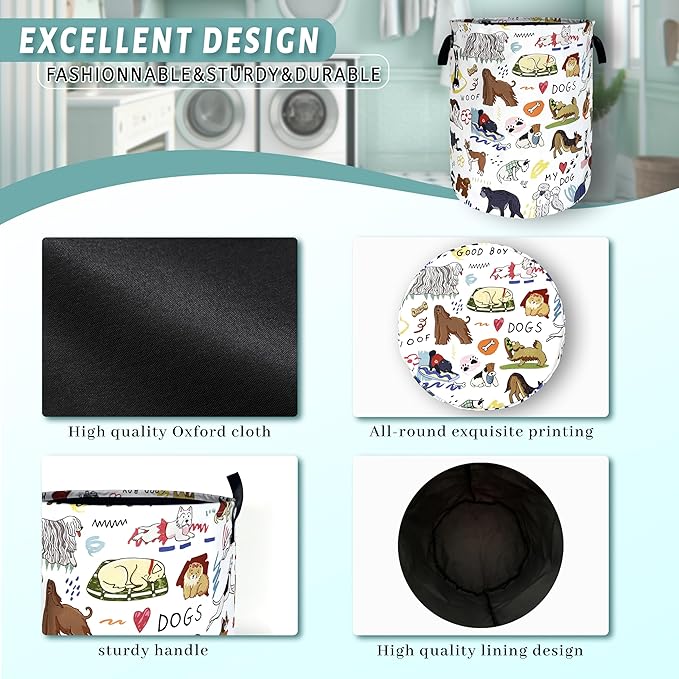 Cute Dogs Laundry Basket Foldable Oxford Cloth Colorful Animals Dog Laundry Hamper With Handle Portable Clothes Storage Basket 18.9 X 16.5 Inch Storage Bag For Laundry Room/Bathroom/Bedroom