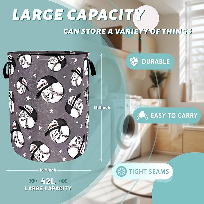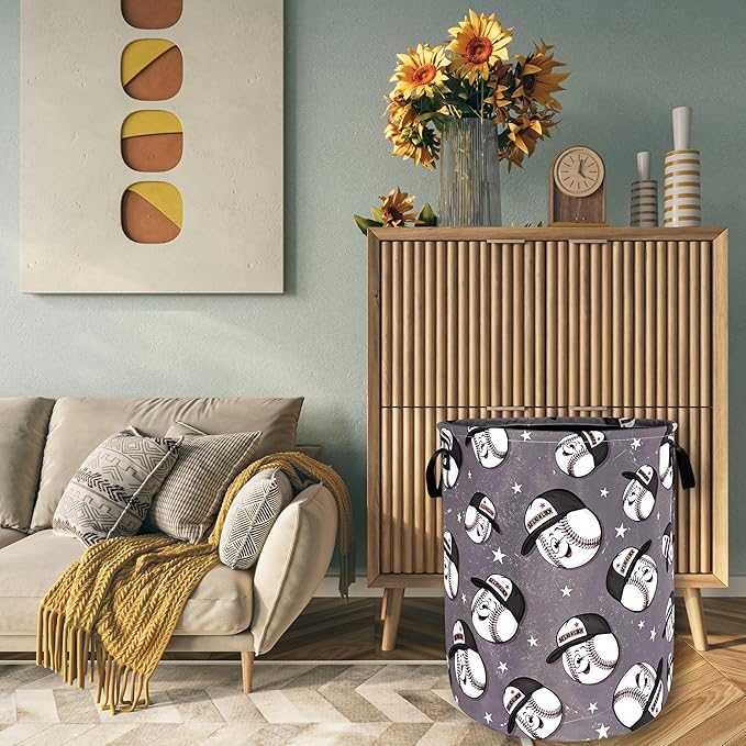 Funny Baseball Laundry Basket Foldable Oxford Cloth Baseball Laundry Hamper With Handle Portable Clothes Storage Basket 18.9 X 16.5 Inch Storage Bag For Laundry Room/Bathroom/Bedroom