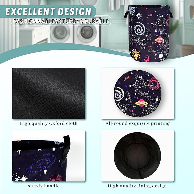 Colorful Galaxy Planet Laundry Basket Foldable Oxford Cloth Starry Sky Laundry Hamper With Handle Portable Clothes Storage Basket 18.9 X 16.5 Inch Storage Bag For Laundry Room/Bathroom/Bedroom