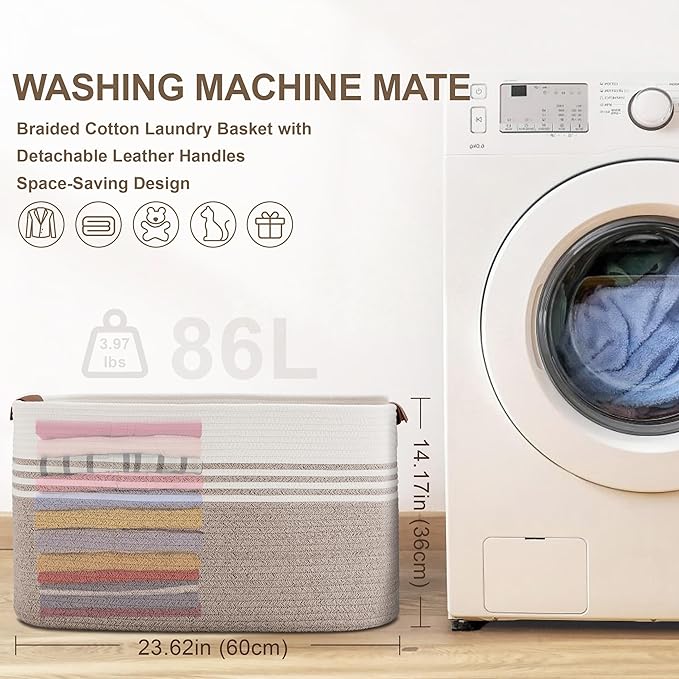 - HOUSEHOLD STORAGE SOLUTION: 86L oversized basket. The extra large basket can hold the entire family's daily laundry and can be used as a toy storage basket, a baby laundry basket, a nursery laundry basket, a blanket/throw storage for living room or a towel basket for bathroom