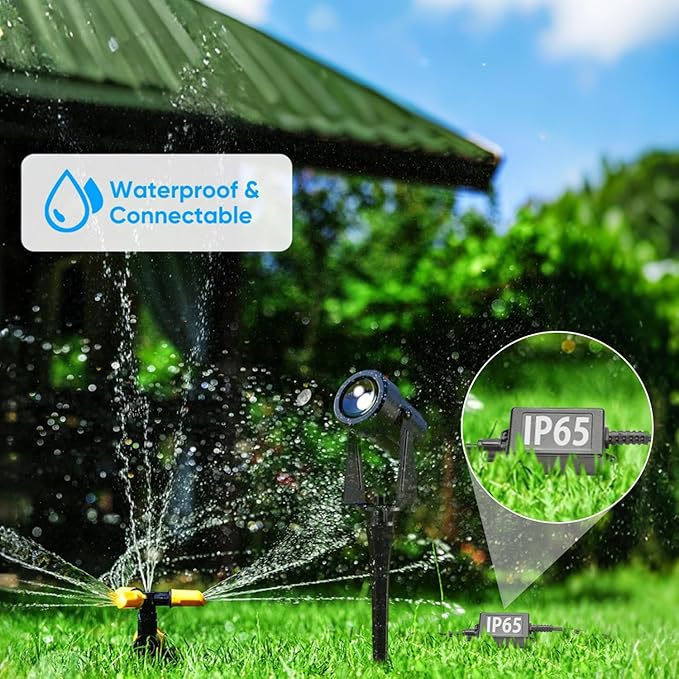- 【Connectable & Adjustable】Waterproof twist connector for quick and easy connection with single low voltage landscape spotlight, which does no harm to passersby or pets such as dogs. 270 degree adjustable head let you focus light wherever you need it to, such as walls, trees, flags, flower bed etc