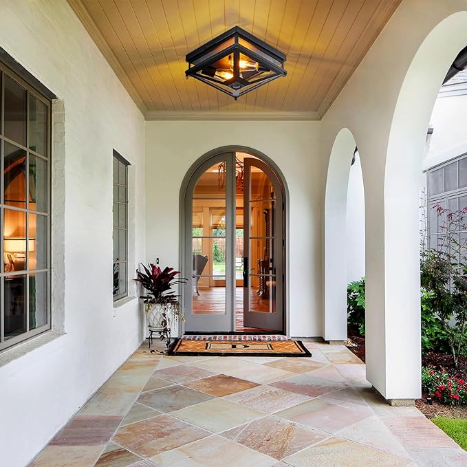 - 【Unique Design】This outdoor ceiling light features a unique diamond shaped design that makes the fixture look like a bright diamond, making your home look more beautiful and bright. The sturdy die cast aluminum frame ensures long-term use both indoors and outdoors.