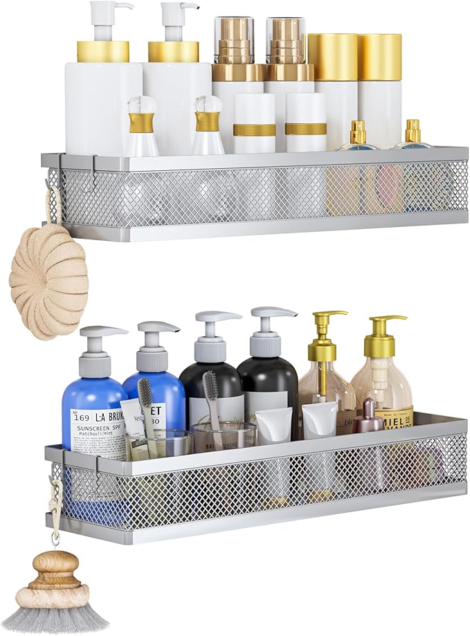 - Included Components : 2 baskets, 2 traceless sticker, 4 hooks, 4 screws, 4 wall stoppers