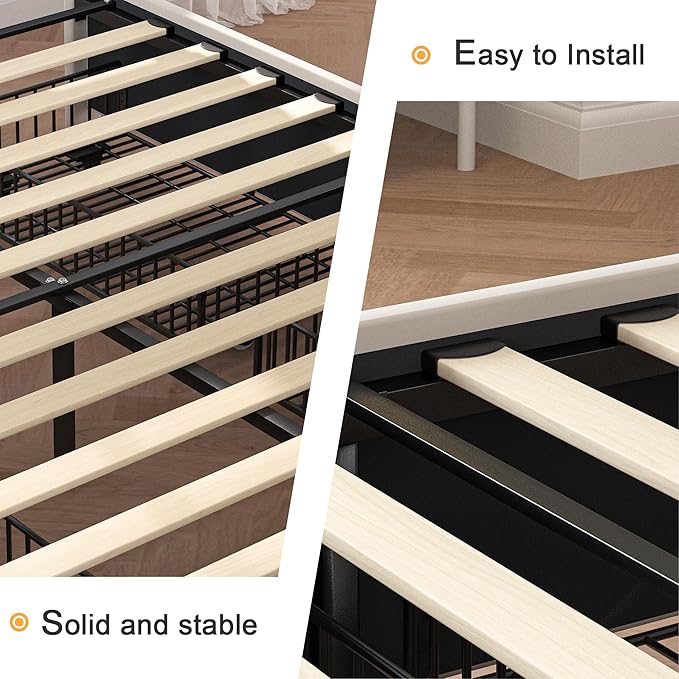 - [Solid Support System & Noise-free Design] The Interior heavy-duty steel framework combined with solid wooden slats allow air circulation and extend the use of the mattress while providing durability and stability with a maximum load capacity of 800 lbs. The attached EVA foam strip also reduces noise effectively and provides a good night's sleep.