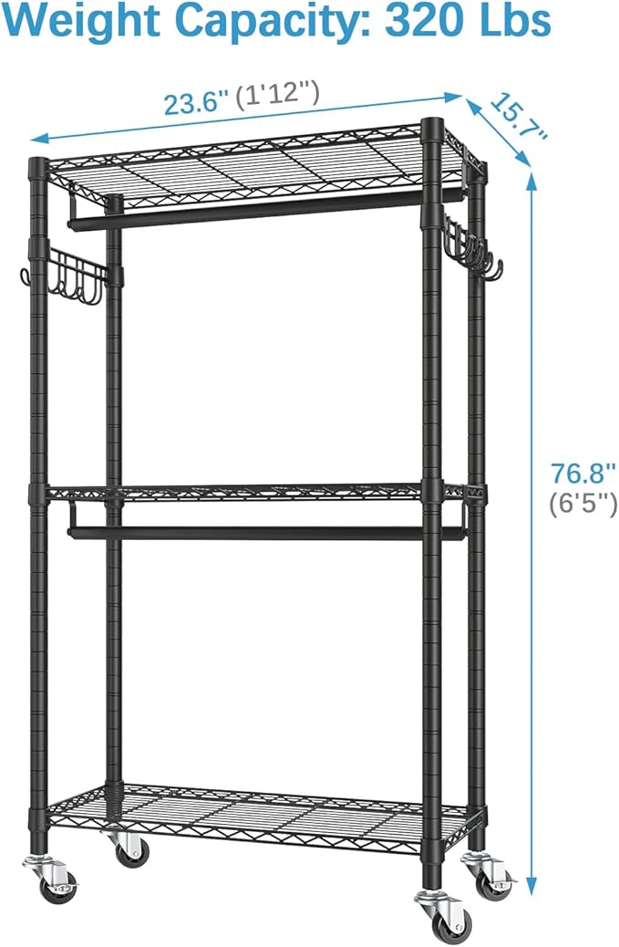 VIPEK R2 Mini Rolling Clothes Rack Heavy Duty Clothing Rack for Hanging Clothes Adjustable Portable Closet Metal Clothes Racks with Wheels Double Rods Side Hooks, Freestanding Garment Rack, Black