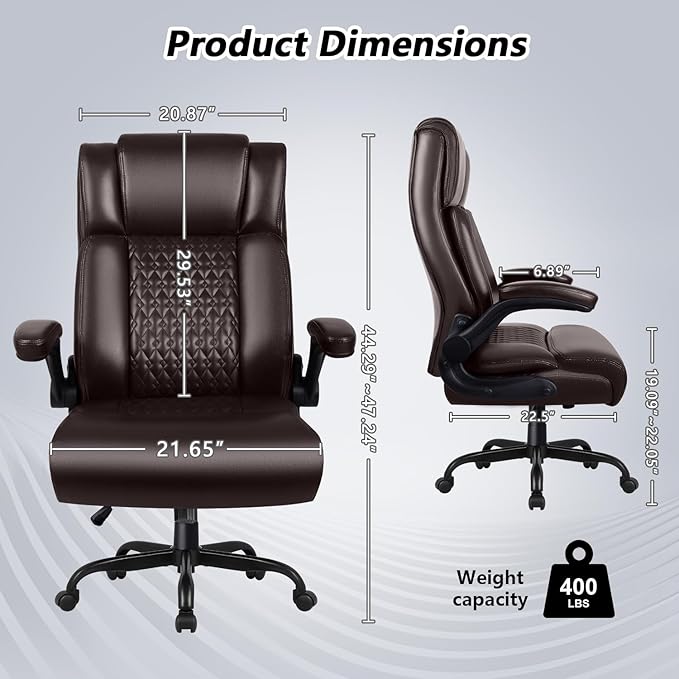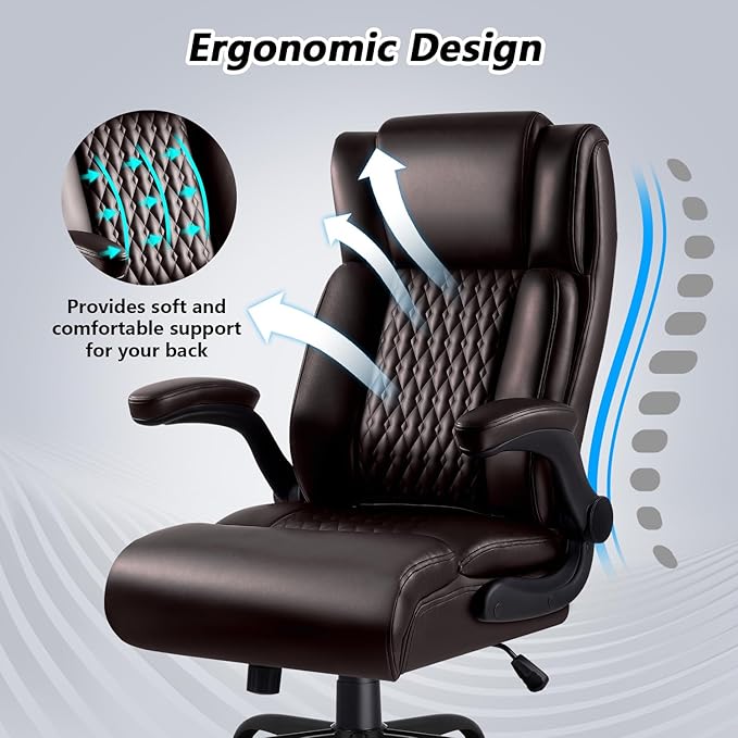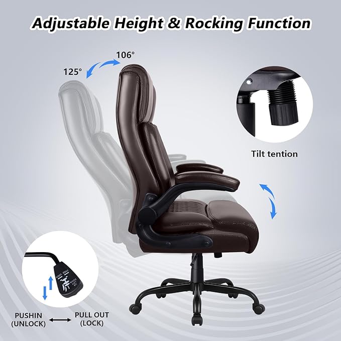 - 【Flip Up Armrests Optimizes Space Utilization】 Lower the armrests of the leather office desk chair to provide good support for your arms while you are working or studying. Lift up the armrests when not using the executive high back tall office chair to easily place it under any desk to save space. This office chair is an excellent choice for a home office.