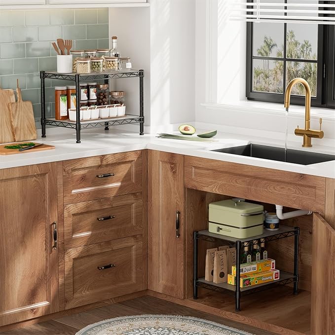 - RUST RESISTANT: This shelf is treated with a moisture resistant coating to prevent rust or corrosion. You can place it in your kitchen or bathroom, or use it for laundry room organization and storage.