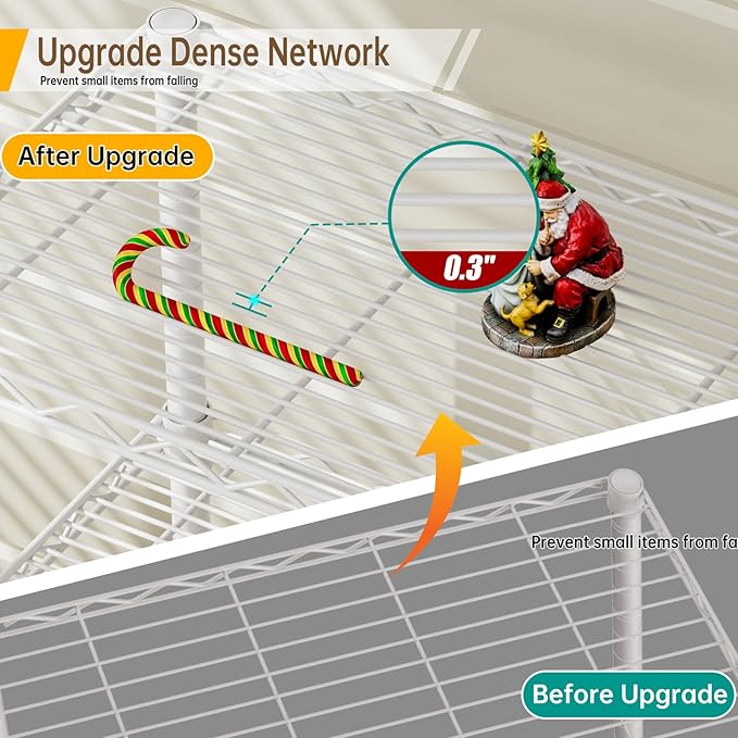 - The shelf is specially coated for protecting it from any water, rust or corrosion. Not worry to place the shelving unit in your kitchen or bathroom, easy to wipe down clean