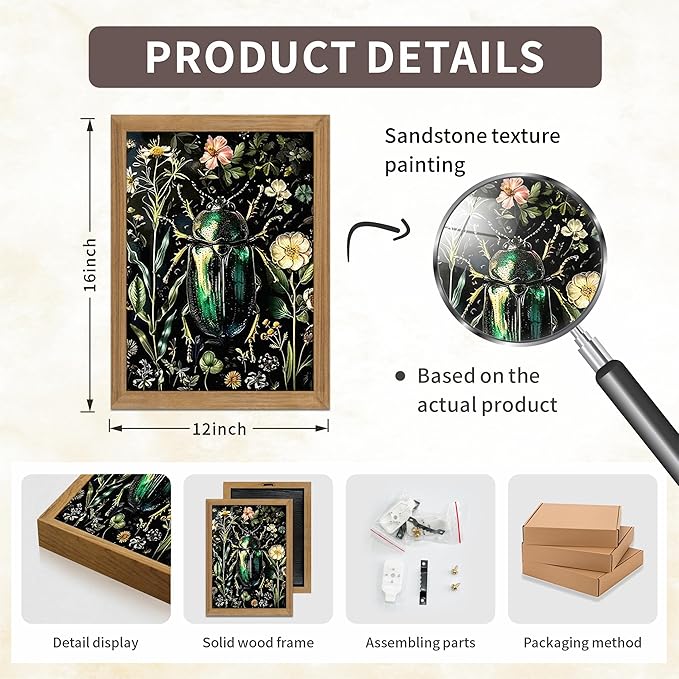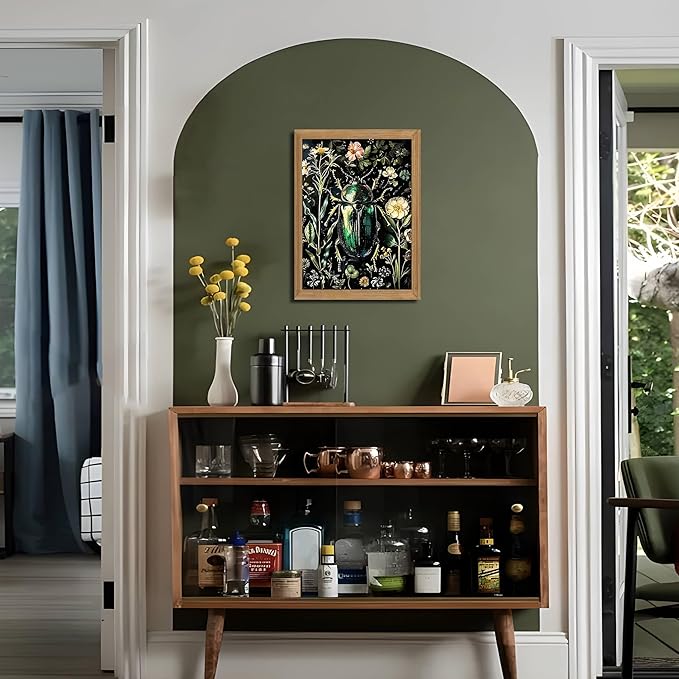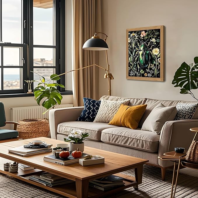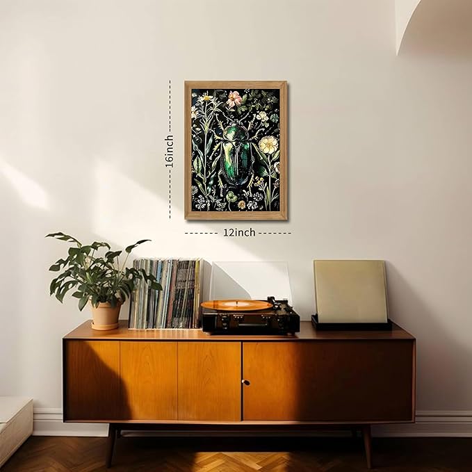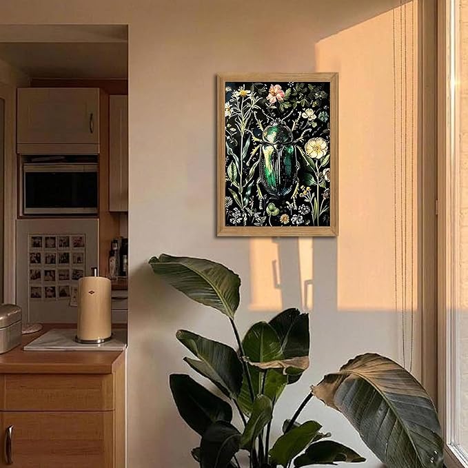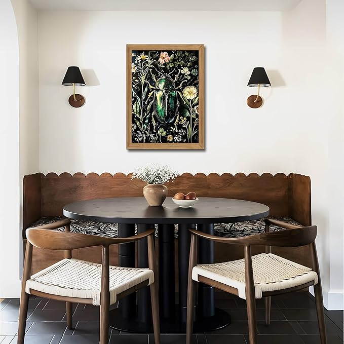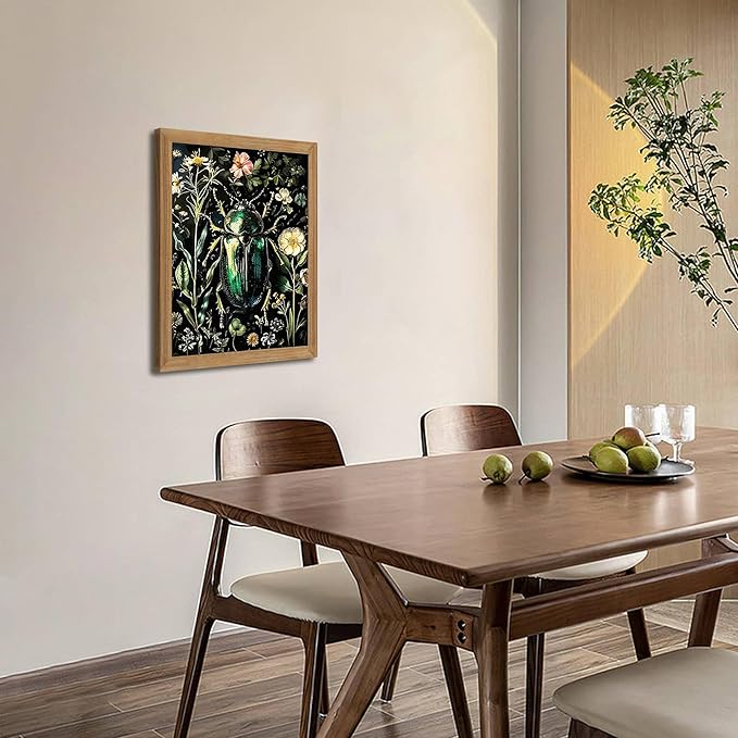 - 【Classic Vintage Wall Art】This mural combines classic vintage style with exquisite beetle and floral patterns to create a unique vintage Gothic atmosphere, adding an elegant and natural touch to your home. Perfect for decorating your bedroom, office, living room or study room