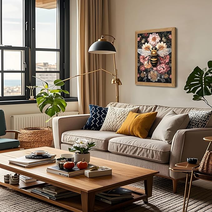 - 【Classic Vintage Wall Art】This mural combines classic vintage style with exquisite bee and floral patterns to create a unique vintage atmosphere, adding an elegant and natural touch to your home. Perfect for decorating your bedroom, office, living room or study