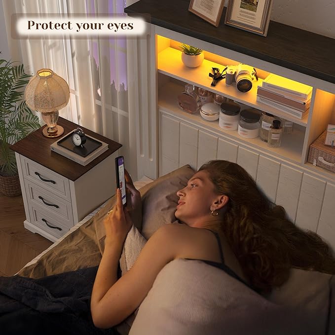 - 【Smart LED & Charging Station】This Full bed frame with headboard comes with an RGB LED light strip. Use the included remote control or mobile app to adjust the color, brightness and mode.The platform bed frame Full size also comes with 2 standard plug outlets, so you can easily charge electronic devices right from the bed. Making home life more vibrant and convenient.