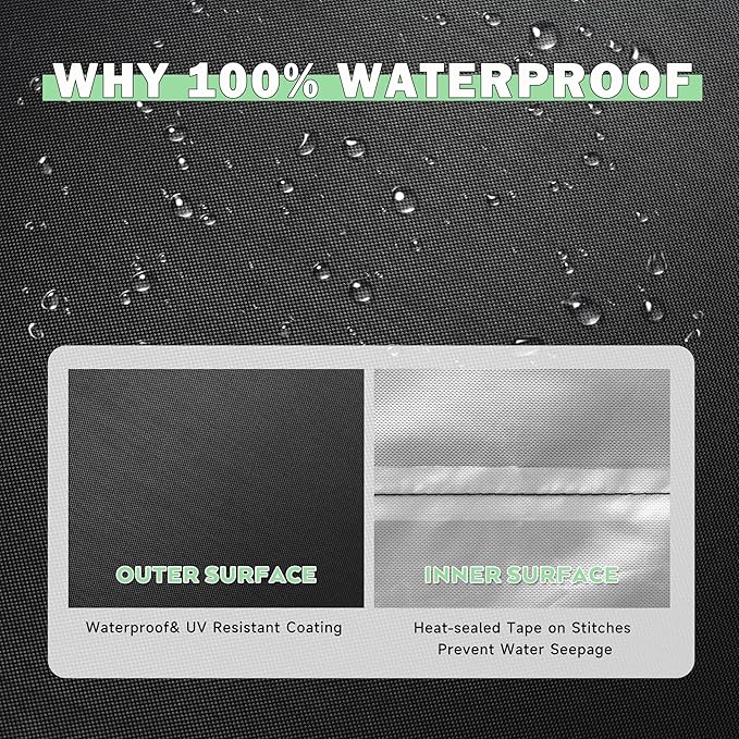 - WATERPROOF & ANTI-UV – Waterproof outer coating and heat-sealed tape on stitches prevent water seepage, making the cover completely waterproof to protect your grill. Inner PU coating layer protects your outdoor griddle from damage caused by prolonged sun exposure