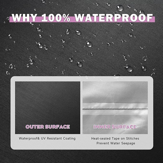 - WATERPROOF & ANTI-UV – Waterproof outer coating and heat-sealed tape on stitches prevent water seepage, making the cover completely waterproof to protect your grill. Inner PU coating layer protects your outdoor griddle from damage caused by prolonged sun exposure