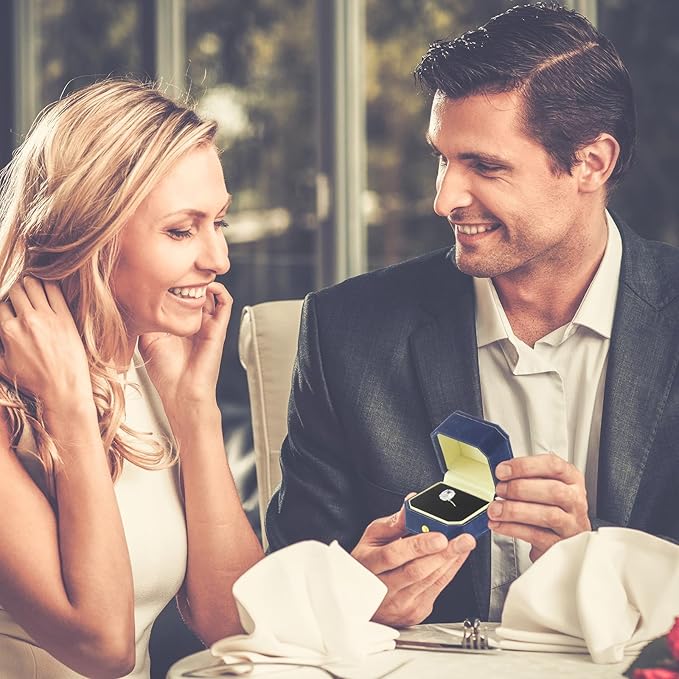 - Premium Quality Materials - The ring box for proposal made from high-quality velvet, this jewelry box offers a soft, smooth, and comfortable feel while protecting your jewelry from any wear and tear. The unique octagonal design and luxurious hot-stamped pattern make this box a perfect display case for your precious rings, earrings, and other accessories.