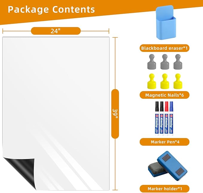 Magnetic Whiteboard Contact Paper, 24" x 39" Stick on Magnetic Dry Erase White Board Sticker on Wall, Easy to Write for Kids Drawing, School, Office, Kitchen Fridge