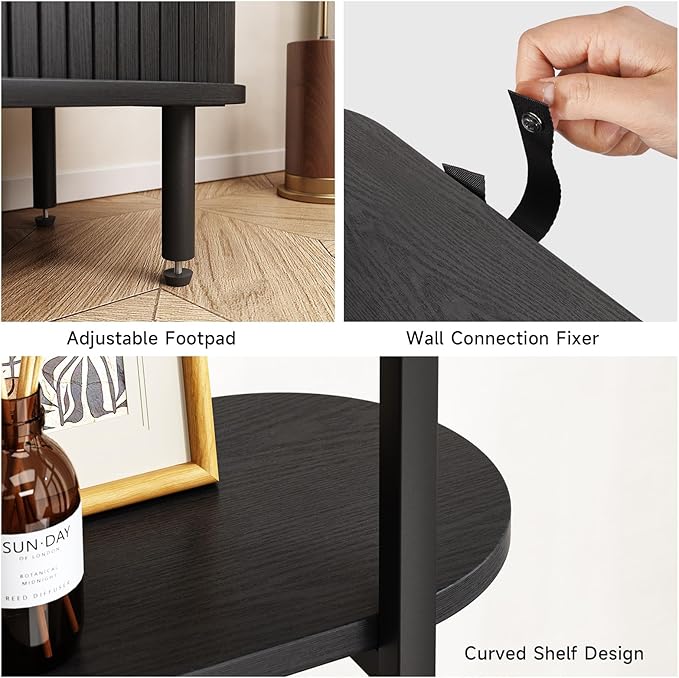 - Mid-Century Modern Bookshelf: ONBRILL 4-layer bookshelf with a storage cabinet, the unique curved shelf design makes you shine. You can use this bookshelf to place books, crafts, photo albums, potted plants, etc.