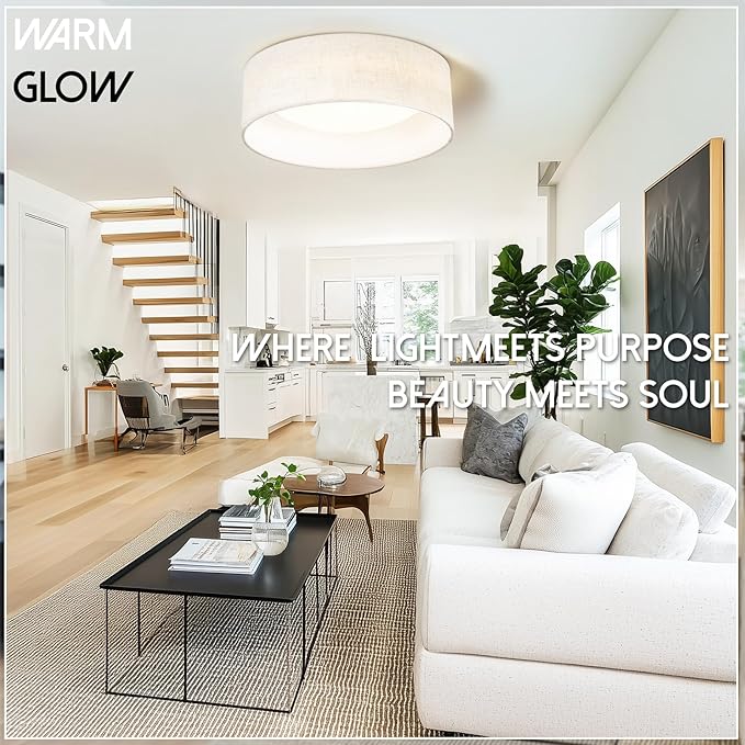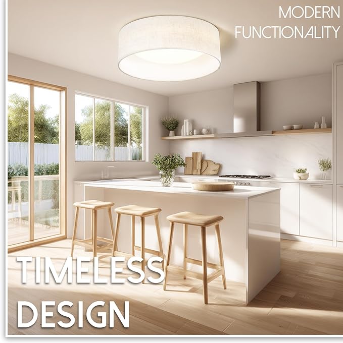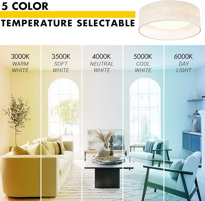 - 【Upgraded Modern Round Led Drum Flush Mount Ceiling Light With 5cct 2500k 3000k 4000k 5000k 6000k 】 An upgraded led drum ceiling light with even light on fabric shade illuminating your home with the radiant glow, a perfect blend of elegance and efficiency. Whether you're looking to brighten up your living room, bedroom, foyer, bathroom, kitchen, hallway, entryway, or any space in your home, this ceiling light fixture with beige shade is designed to enhance your environment while saving you money on energy costs.