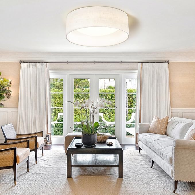 - 【Quality Led Chips】the premium led chips extend the lifespan of the 12 inch ceiling light fixture with linen shade to longest extent and you can save bills on changing bulbs frequently. Compatible with most dimmers to meet your various lighting requirements and adapt to different ambience.