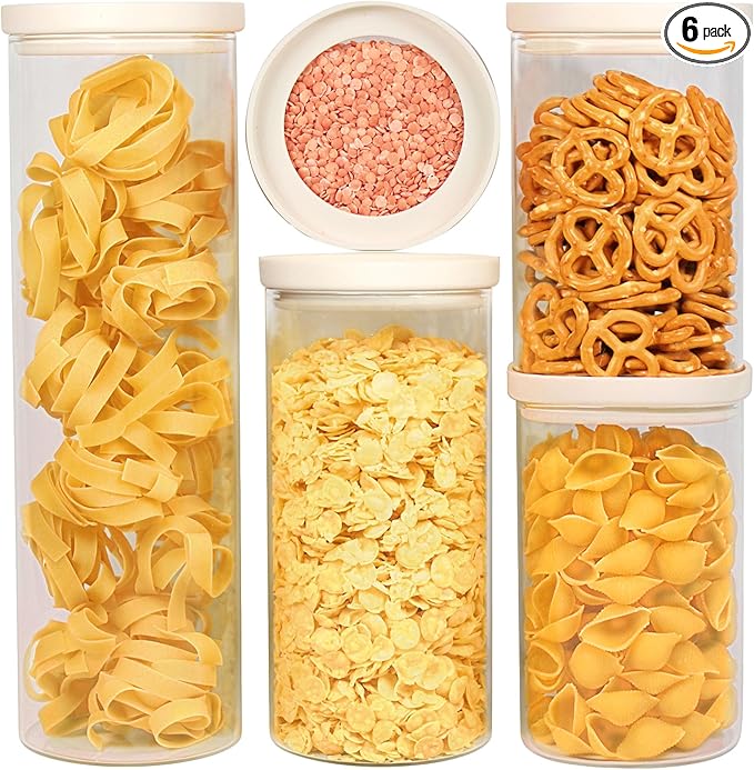 - ✅ANTI-SLIP STACKABLE LID DESIGN: All our glass lids are made with a unique stackable feature for space saving storage, the special nesting lid design makes the glass jars snuggle the lid tightly. The silicone airtight lid makes the lid seal tight, which ensures food stays dry and fresh for a much longer time. Our white glass lids jars are practical, functional, and contemporary looking anywhere you display at home or business.