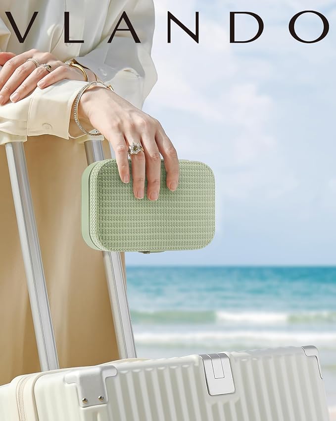 Vlando Travel Jewelry Case, PU Leather Travel Jewelry Box with Earring Holder, Portable Display Small Jewelry Box for Mothers Day Women Girls Gift - Green