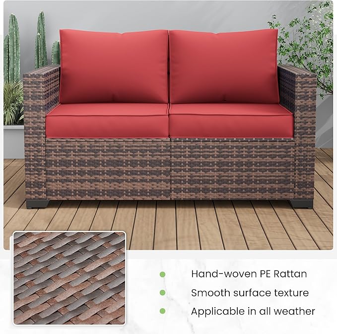 Amopatio Patio Loveseat, Outdoor Furniture 2-Seat Wicker Porch Furniture Outdoor Couch Sofa with Water-Resistant Cover & Non-Slip Cushions, Premium Patio Set,Burgundy