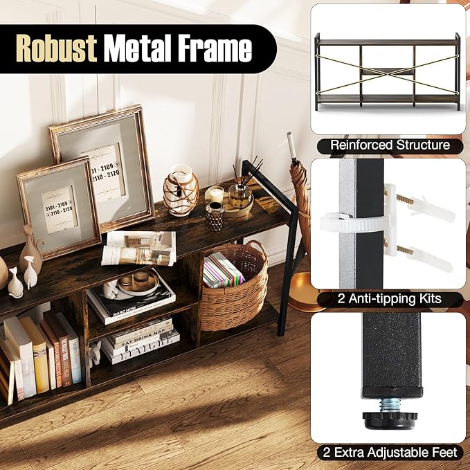 - Elegant & Rustic Style: With an industrial yet rustic charm, this unit is not just a TV stand—it’s a statement piece that elevates the style of your room. It’s the perfect blend of functionality and fashion, making a bold impression in any living space.